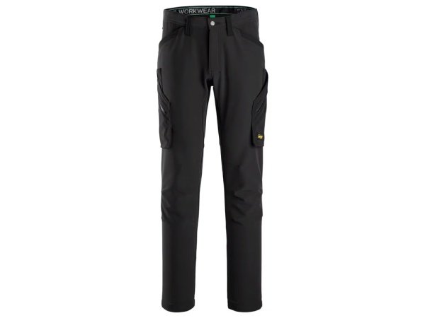 Snickers Flexiwork 6873 arbejdsbukser er fleksible og designet til servicefag, transport, lager eller lignende arbejdsmiljøer. Bukserne er fremstillet af genanvendt polyester med 4-vejs stræk og har forbøjede ben samt et panel i skridtet, som sikrer god bevægelsesfrihed og komfort. Derudover er bukserne udstyret med to stretch CORDURA® lårlommer, to baglommer med klapper, samt en kniv- og en tommestoklomme. Forlommerne har forstærkede kanter for at gøre dem mere slidstærke.