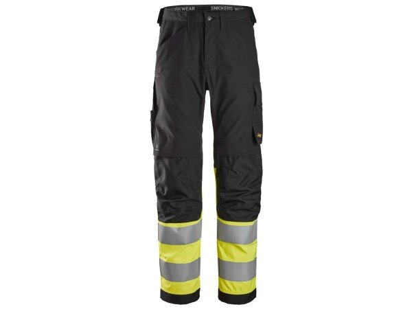 Snickers bukser 6339 er et par high-vis arbejdsbukser i klasse 1, som er udviklet til professionelle inden for byggeri, anlæg, vejarbejde og transport. Bukserne er certificeret iht. EN ISO 20471 og EN 14404 og giver pålidelig synlighed samt effektiv knæbeskyttelse via CORDURA®-forstærkede KneeGuard™-lommer.