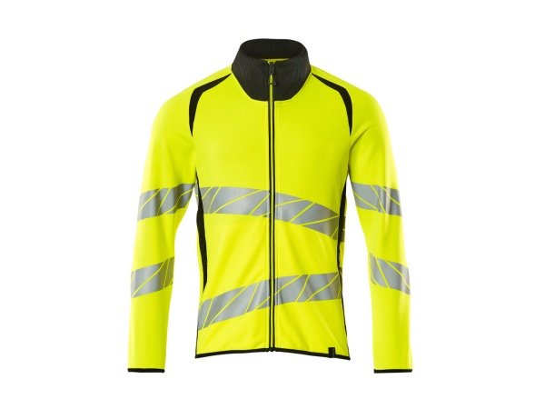 Mascot sweatshirt Accelerate Safe er med fluorescerende og med skrå, tværgående reflekser. Sweatshirten er med moderne, mere kropsnær pasform og utroligt god bevægelsesfrihed. På trøjen er forlommer med lynlås for sikker opbevaring og der er ekstra polstring over syningen i nakken, således sømmen ikke generer.
