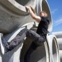 Sikkerhedsskoens underside er designet med brede riller, der giver godt fodfæste og sikrer jord, sang, vand og mudder ledes væk fra sålen.
