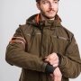 Pinewood Småland jagtjakke er vind- og vandtæt med tapede sømme, og er vatteret med Thermolite®. Jakken har høj åndbarhed med ventilationslynlåse i siden og har en aftagelig hætte med indbygget skærm.