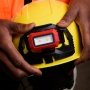 Beslaget er vendbart og kan fastgøres på forsiden eller bagsiden af sikkerhedshjelmen.