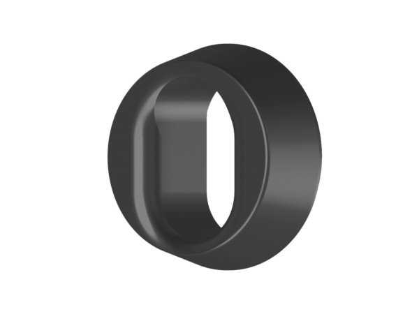 Hoppe cylinderring til oval cylinder. Brug cylinderringen på den udvendige side af en facadedør. Cylinderen er i matsort aluminium og massiv med faste hylstermøtrikker. Cylinderen monteres via skjult maskingevind M5 skruer indefra. Længden på skruen vælges ud af dørtykkelsen. Beslået i henhold til skandinavisk standard.