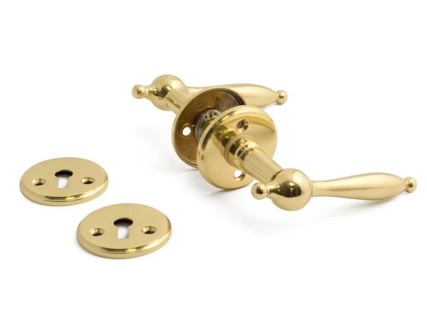 Habo dørgreb A9685 i messing er et utroligt flot dørgreb til indvendige døre med en tykkelse på 38 - 42 mm. Dørgrebet leveres inklusiv nøgleskilte.