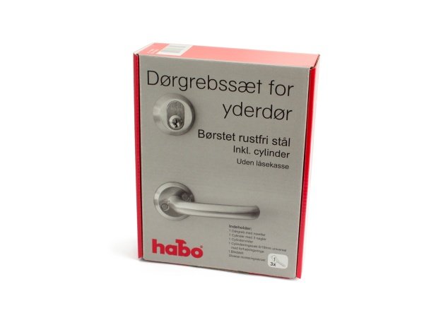 Habo dørgrebssæt i rustfrit stål er et komplet sæt, der består af dørgreb, cylindervrider, universal cylinderring, blindskilt, forhøjningsring og ovalcylinder. Derudover medfølger der skruer til montering samt 3 stk. nøgler. Habo dørgrebssæt passer til døre med en tykkelse på 35-60 mm.