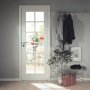 Swedoors Easy Style SP12 sprossedør hvid (NCS 0502-Y) er en moderne formpresset sprossedør til indendørs brug. En elsket klassiker der passer til indretningen i de fleste hjem. Glasdøren har en fyldning nederst og 12 glasfelter med hærdet glas. Døren er vendbar, hvorfor du ikke skal tage stilling til hvilken side døren skal være hængslet i.