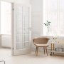 Swedoors Easy Style SP12 sprossedør hvid (NCS 0502-Y) er en moderne formpresset sprossedør til indendørs brug. En elsket klassiker der passer til indretningen i de fleste hjem. Glasdøren har en fyldning nederst og 12 glasfelter med hærdet glas. Døren er vendbar, hvorfor du ikke skal tage stilling til hvilken side døren skal være hængslet i.