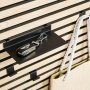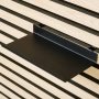Nortiq hylde er enkelt og praktisk i mat sort og er designet til montering i akustikpaneler, hvor disse er sat op vandret.