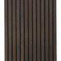 Woody & Moody akustikpanel 601x2420 cm grå eg (også kaldet sortbejdset eg) mat lak med sort akustikdug leveres som et komplet panel med grå egelameller, der er klar til montering på enten loft eller væg. Akustikpanelernes design udgøres af lameller med finér af grå egetræ og en bagvedliggende akustikdug. Træet giver et naturligt udtryk, der bryder hvide overflader og bidrager med varme til boligen. Den bagvedliggende akustikdug har en lyddæmpende effekt og giver et behageligere indeklima med mindre rumklang. Akustikpanelerne består af naturligt træfinér på MDF-lameller, der har en bredde på 32 mm med en afstand på 13 mm til næste lamel. Lamellerne er lakerede med mat lak, således at produktet ikke skal efterbehandles eller vedligeholdes. Bag lamellerne ses den bagvedliggende sorte akustikdug, der er fastgjort med bagvedliggende montagelister i birkekrydsfiner, som samtidig benyttes til monteringen på væg og/eller loft. Akustikpanelet har en samlet dimension på 601x2420x21 mm, og det er muligt at save panelet til. For at opnå bedst mulig akustik i rummet anbefales det at montere 9-45 mm isolering bag akustikpanelet.
