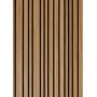 Woody & Moody akustikpanel random 600x3000 mm eg mat lak med sort poyesterpanel leveres som et komplet panel med egelameller, der er klar til montering på enten loft eller væg. Akustikpanelernes design udgøres af lameller i varierende bredde med finér af træ og en bagvedliggende polyesterplade med akustikdæmpende egenskaber. Træet giver et naturligt udtryk, der bryder hvide overflader og bidrager med varme til boligen. Den bagvedliggende sorte akustikplade (læs: polyesterplade) har en lyddæmpende effekt og giver et behageligt indeklima med mindre rumklang. Akustikpanelerne består af naturligt træfinér på MDF-lameller, der har en bredde på henholdsvis 20 mm, 32 mm og 51 mm med en afstand på 14 mm mellem hver lamel. Lamellerne er lakerede med mat lak, således at produktet ikke skal efterbehandles eller vedligeholdes. Bag lamellerne ses den bagvedliggende sorte polyesterplade. Akustikpanelet har en samlet dimension på 600x3000x21 mm, og det er muligt at save panelet til. For at opnå bedst mulig akustik i rummet anbefales det at montere 9-45 mm isolering bag akustikpanelet.