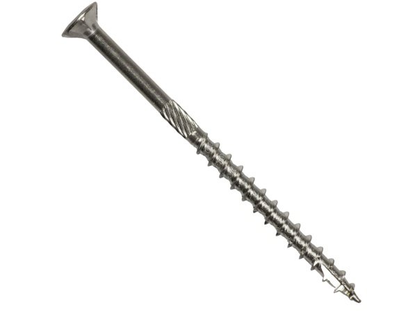 NKT Fasteners spun+ skrue 5,0x80/45 mm rustfri A4 med TX kærv med Mooncut spids samt sfærisk hoved (SUH) og med ind-/udvendige ribber. NKT Fasteners spun+ rustfri skrue er en universal skrue, der er perfekt til udendørsbrug i træ, plast, dybler, rawplugs med mere. Fræseribberne sikrer en flot afslutning i træet.
