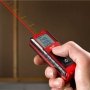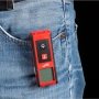 Måleren tilbyder både metrisk og imperial opmåling, og den har en praktisk auto-sluk funktion og batteriindikator, der sikrer optimal ydeevne. Måleren er udstyret med en bælteklips for nem transport. De praktiske betjeningsknapper på både forsiden og siden gør det hurtigt og nemt at justere indstillingerne, mens det store 3-linjers LCD-display med hvidt baggrundslys sikrer, at målingerne er lette at aflæse, selv i svagt lys.
