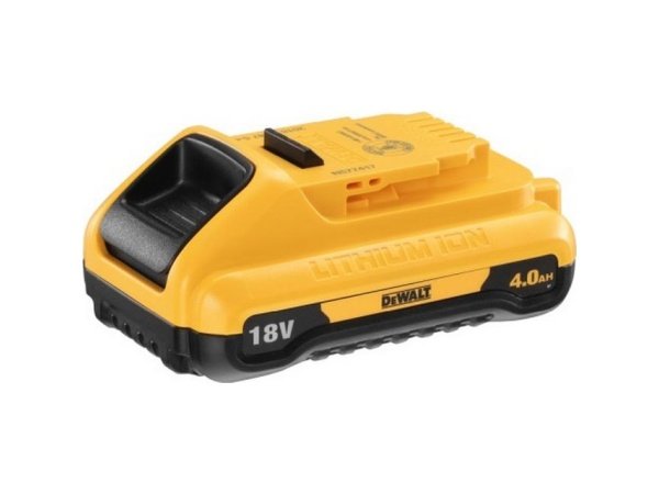 Dewalt 18V XR 4,0 Ah batteri har højere kapacitet i et mindre design, men er mindre i designet, og fylder derfor mindre. Batteriet har en LED-indikator, som viser batteriets strømstatus.