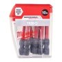 Shock ZoneTM reducerer spidsens belastning, hvilket resulterer i færre brud. Derudover har Milwaukee Shockwave bitsens spids er komprimeret under smedning for maksmial hårdhed og ekstra lang levetid, samt for optimal pasform i skruehovedet, hvilket minimerer risikoen for, at bitten glider og skruer over gevind.