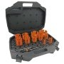 CMT HM hulsavssæt indeholder 6 forskellige HM hulsave i forskellige størrelser samt 2 holdere i HM. I i kufferten er der plads til at supplere op med flere.