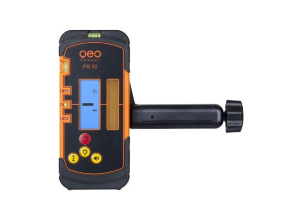 GeoFennel lasermodtager FR 50 er en modtager, der fungerer med både røde og grønne rotationslasere samt andre fabrikater. Den leveres med et specialbeslag, der giver mange muligheder for montering på både runde og firkantede emner.