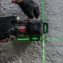 Milwaukee M12 360° 3-plans laser giver en alt-i-en løsning med én horizontal linje og to vertikale linjer for let og hurtig justering, markering af vater, ret vinkel og overførsel med ét værktøj. Linjelaseren er designet med en grøn højintensitets-laser med op til 4x bedre synlighed end røde lasere.