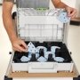 I Systaineren er dine slibepapirer beskyttet mod støv, vandstænk eller bukning og muliggør dermed en professionel transport af slibepapirerne. Systainerne er kompatible med hinanden og kan forbindes med alle tidligere Systainer-generationer samt andre maskiner og meget andet tilbehør.