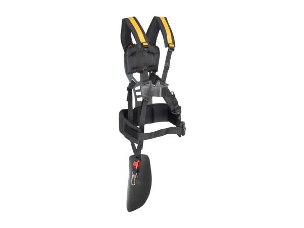 Stiga Elite bæresele til buskrydder med vatterede skulderstropper og beskyttende vattering ved hoften. Bagpladen sammen med de dobbelte stropper gør selen komfortabel at bære og ergonomisk for kroppen.