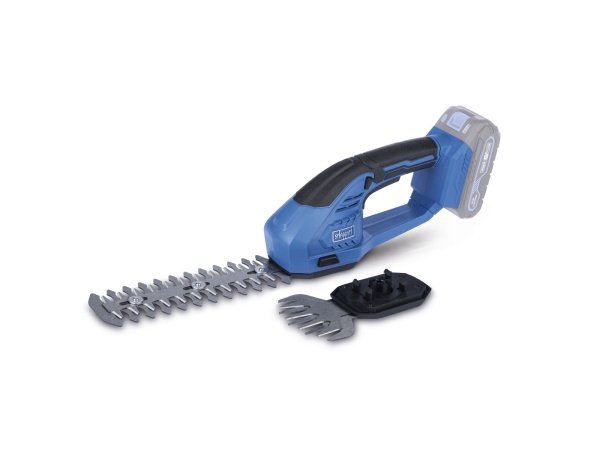 Scheppach C-HTGS200-X 2-i-1 multiklipper er ideel til trimning af buske, plænekanter, små hække og til formklipning. Græsklingen med en bredde på 90 mm sikrer optimal pleje af plænekanter, mens buskklingen med en skærelængde på 200 mm er det perfekte værktøj til hække- og buskpleje. Klingeskiftet sker nemt og uden brug af værktøj via et kliksystem.
