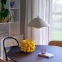 Freya er en familie af organisk formede lamper i et moderne nordisk design. Den næsten overdimensionerede topskærm omfavner den nederste og fuldender den elegante silhuet – samtidig med at den dækker lyskilden, så man opnår et behageligt lys. Denne pendel er perfekt til at lyse op over dit spisebord, alene eller i et par af to, eller endda over dit køkkenbord.