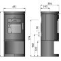 - Afstand til brændbart materiale bag ovnen: 15 cm