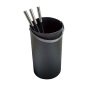 Varde pejsesæt består af kost, skovl og ildrager med håndtag i rustfrit stål. De tre dele opbevares i en praktisk og stilren beholder i sort læder-look.