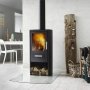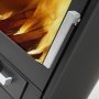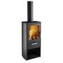 Varde Ovnes Samsø brændeovn har et let og rustikt design. Med Samsø brændeovnen får du godt udsyn til flammerne og brændeovnen leder tankerne hen på både en pejs og et åbent ildsted takket være det store brændkammer i toppen, og det fine rum til brænde i bunden. Med den indbyggede rudeskylsfunktion har du glæde af, at ilden altid er synlig (ved korrekt fyring). De stilrene og ensartede håndtag til både brændkammeret og askeskuffen sikrer en flot sammenhæng i designet. Varde Samsø har både top- bagudgang.