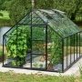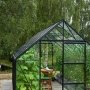 Halls Universal 128 9,9 m² drivhus med 3 mm delt glas og sorte profiler er et diamantformet drivhus med en meget kraftig konstruktion. Halls Universal drivhus har et meget klassisk design tilsat nogle meget lækre detaljer. Det er et meget praktisk og stabilt drivhus. Alt i alt får du her et meget rummeligt drivhus med en højde på over 2 meter, så du har rig mulighed for at lade kreativiteten få frit løb.