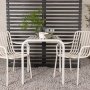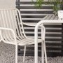 Cafébordet kombineres med stole fra Peking-serien med et tilsvarende ribbet udseende og beige farve, der passer til bordet. Stolene er fremstillet i aluminium, så de er lette at flytte og-/eller stable, mens de samtidig har integrerede armlæn.