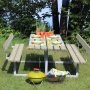 Dette Plus Basic bænkesæt er fremstillet i nåletræ undtaget de to sæt i henholdsvis teak og lærk.