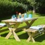 Plus Bord/Bænkesæt kommer i "saml-selv". Plankerne er kun grundbehandlet, og skal derfor slutbehandles. Holdes de ved lige, kan du lade bænkesættet stå ude hele året rundt.