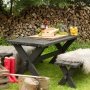 Plus Nostalgi Bord/Bænkesæt trykimprægneret sort fyr/gran 185900-15. Plus Nostalgi Bord/Bænkesæt er super funktionelt, da bord og bænk ikke hænger sammen. Du kan derfor flytte sættet rundt efter behag. De lange planker gør designet let og stilrent. Både bord og bænk står på krydsede ben, hvor en planke på tværs, som er sat sammen med en trækile, hjælper på stabiliteten. Plus Nostalgi Bænkesæt passer perfekt ind i haven og på terrassen.