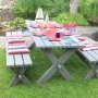 Plus Bord/Bænkesæt kommer i "saml-selv". Plankerne er kun grundbehandlet, og skal derfor slutbehandles. Holdes de ved lige, kan du lade bænkesættet stå ude hele året rundt.
