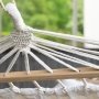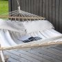 Venture Anini hængekøje er en populær hængekøje i et moderne design fremstillet af holdbare og slidstærke materialer. Den hvide hængekøje fra Venture Design er lavet af bomuld og polyester med træpinde i hver ende, der strækker stoffet ud.