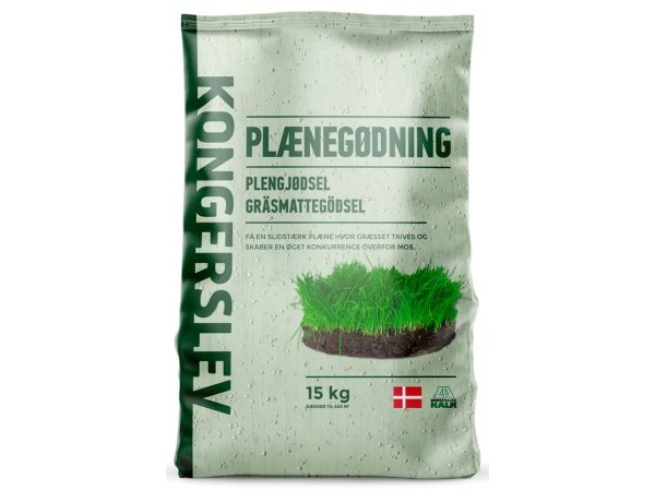 Kongerslev plænegødning styrker planter og rodnet, og er med til at forebygge gule strå, mos og ukrudt, så græsset får bedst mulige vilkår gennem vækstsæsonen. Kongerslev NPK 14-3-15 klorfattig plænegødning er sammensat for at give græsset et robust rodnet og stor modstandsdygtighed i konkurrence mod mos.
