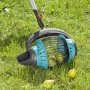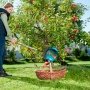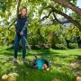 Gardena combisystem frugtopsamler er den smarte løsning til opsamling af frugt, uden du behøver at bøje dig. Opsamleren kan håndtere frugter fra 4 til 9 centimeter i størrelse. Så uanset om du skal samle æbler, blommer eller valnødder op fra græsplænen, er det bare at rulle frugtopsamleren hen over frugterne, så bliver de opsamlet i beholderen. Opsamleren er tilmed nem at tømme, takket være den patenterede sideåbning, som muliggør tømning uden at skulle bøje sig og uden brug af yderligere hjælpemidler. Har du steder, der er svære at komme til, fx tæt på en træstamme, kan du gøre brug af frugtopsamlerens praktiske skovlfunktion.