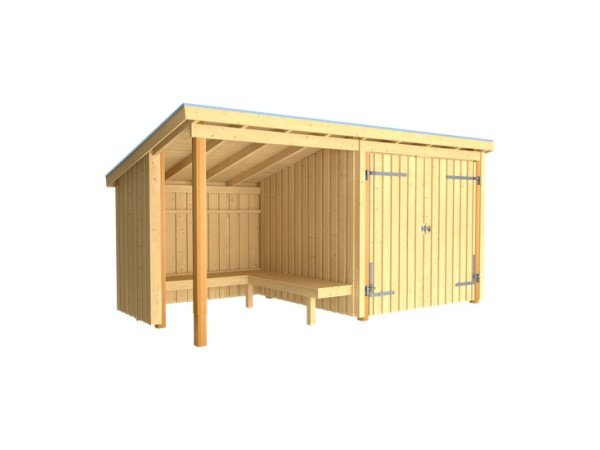 Plus Nordic kombineret bålhytte og havehus på 9,5 m2 Type 1B.Er i ubehandlet nåletræ med tre lukkede sider i bålhuset samt en indbygget bænk, hvor du kan samle familie og venner. Desuden er huset med et lille skur, hvor du kan gemme haveredskaber m.m.
