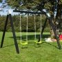 Plus Luksus gyngestativ m/gyngesæder grøn plast trykimprægneret sort fyr/gran 185190-15. Et gyngestativ er til sjov og leg for børnene, men det styrker også deres motorik og sanser, hvor balancecentret bliver styrket, når barnet gynger frem og tilbage. Dette stativ giver mulighed for tilkøb af målvæg eller redegynge.