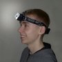 Ryom pandelygte med rød LED lys bagpå og 8 hvide lyskilder i front, hvoraf 6 er LED og 2 er COB. Med nakkerem og hovedrem i bred elastik, og placering af batteriet i nakken er pandelygten behagelig at have på. Pandelygten fra Ryom har desuden flere forskellige indstillinger samt justerbar front.