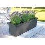 Selvvandingskassen er med hjul, der gør at den er flytte rundt på. Plantekassen er i antracitgrå plast og måler 45x35x39 cm (L X H X B).