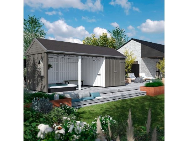 Havehuset er en moderne fortolkning af det traditionelle og praktiske redsabsskur, som er blevet tilført lækre og gennemførte detaljer.