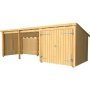 Plus Nordic Multi 3 havehus 635x218x167x218 cm med dobbeltdør er et stort multihus, der kan anvendes til flere formål som f.eks. cykelskur, brændeskur, opbevaringsskur og meget mere. Plus Nordic Multi havehus leveres som "saml-selv" i ubehandlet træ, og det anbefales, at du behandler træet før opsætning.