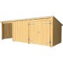 Plus Nordic Multi 3 havehus 635x218x167x218 cm med dobbeltdør samt én lukket og én åben front. Det store Plus Nordic Multihus 3 giver dig utroligt mange anvendelsesmuligheder som f.eks. cykelskur, brændeskur, opbevaringsskur og meget mere. Plus Nordic Multi havehus leveres som "saml-selv" i ubehandlet træ, og det anbefales, at du behandler træet før opsætning. Plus Nordic Multi 3 havehus leveres inklusiv tagpap og alulister.