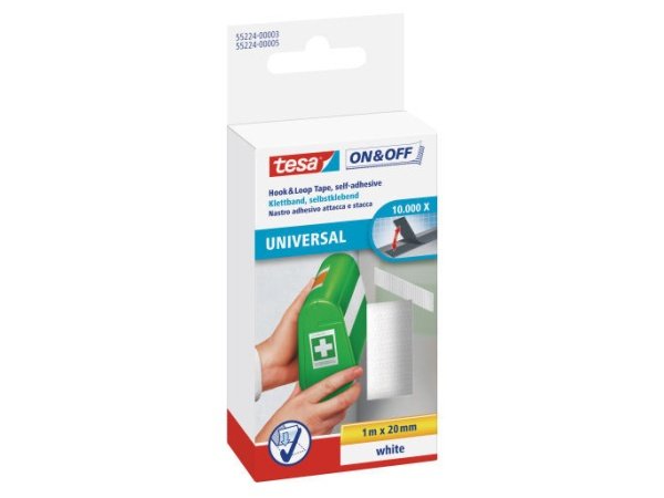 Tesa On & Off Burretape 55224-08 kan skabe orden i hjemmet eller på kontoret. Påfør den ene halvdel på væggen, opslagstavlen, køleskabet eller i stuen. Den anden halvdel påfører du på den genstand du vil holde styr på, om det være sig lommeregneren, kuglepennen, fjernbetjeningen eller noget helt fjerde.