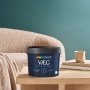 Når malingen er gennemtør, danner den en vand- og fedtafvisende overflade, der tåler hyppig rengøring med almindelige rengøringsmidler uden at miste sit matte udtryk.