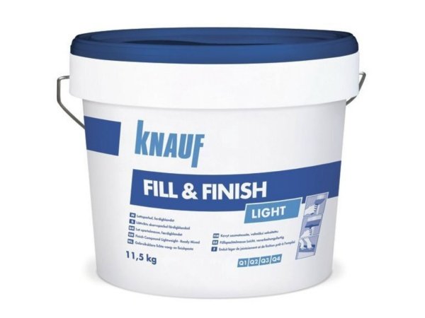 Knauf spartelmasse Fill&Finish 10 liter klar til brug, er velegnet til at spartle pladesamlinger samt fuldspartle. Spartelmassen kan bruges på både gipsplader, fibergipsplader, betonoverflader, porebetonsten og forskellige gamle underlag. Knauf spartelmasse er velegnet til montering af papirstrimler samt papirbeklædte metalhjørnelister. Produktet er let og hurtigt at påføre samt er nem at slibe, og giver en god fyldeevne. Den er testet og anbefalet til bl.a. Knauf Ultra Board.
