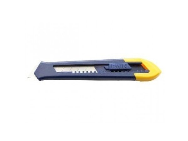 Irwin knæk-af (18 mm) er en populær kniv. Kniven er i letvægtsklassen og har en bælteclips, som gør den nem at have med under arbejdet.