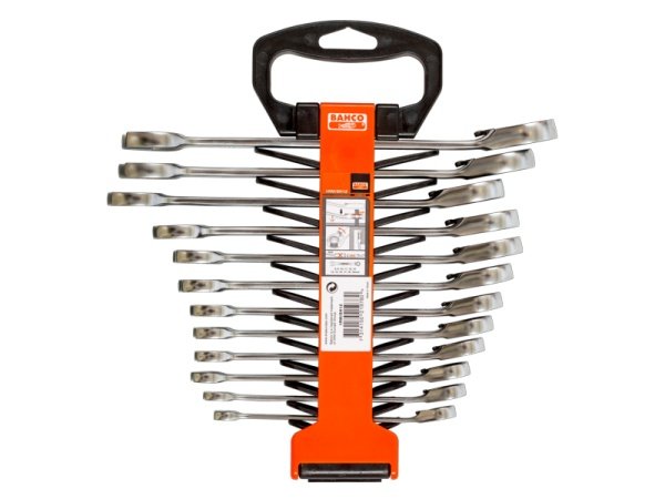 Bahco ringskraldenøglesæt metrisk med 12 dele (8-19 mm), 1RM/SH12. Sættet leveres i praktisk plastholder, så det er nemt at holde styr på værktøjet.