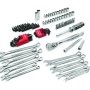 Sættet består af tændrørstoppe og toppe 6-19 mm – 3/16”-13/16”, ringgaffelnøgler 6-15 mm – ¼” – 5/8”, stiftnøglesæt, boltbits, bits og holder.